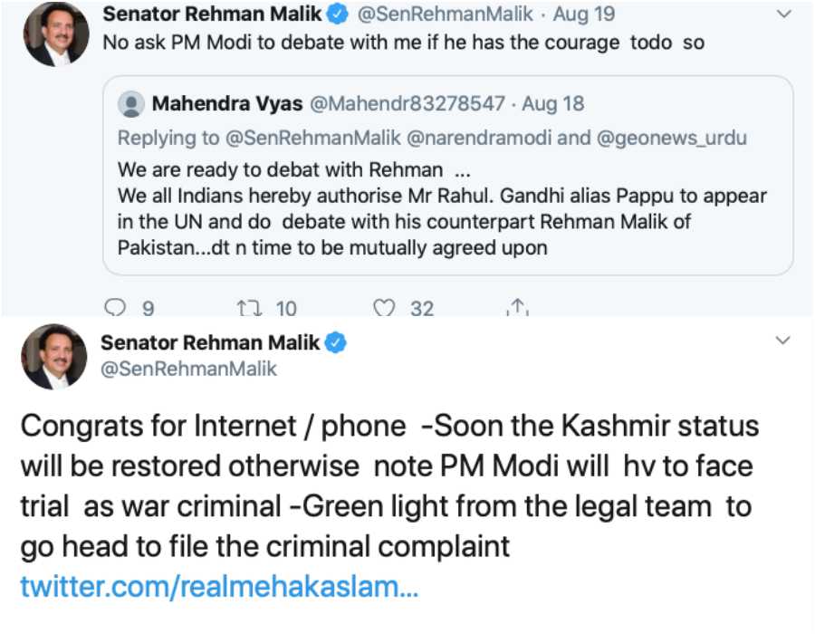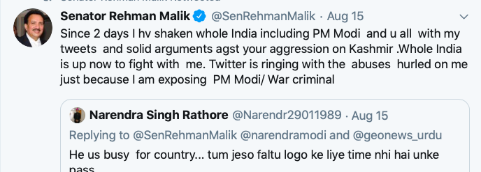 — Senator Rehman Malik (@SenRehmanMalik) August 23, 2019