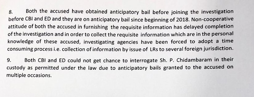 Both CBI and ED could not get a chance to interrogate Sh. P. Chidambaram in their custody as permitted under the law due to anticipatory bails granted to the accused on multiple occasions, the statement adds.
