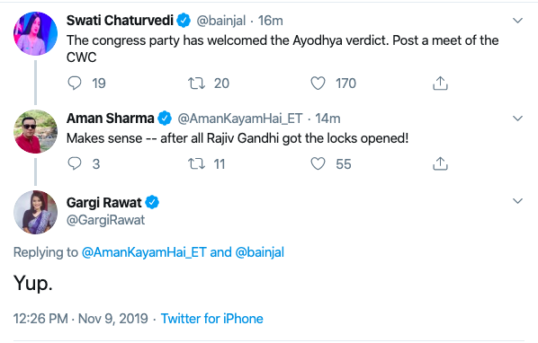 Other ‘journalists’ also thought it is only fair that Congress gets its due credit for the Ram Temple which will soon be constructed.