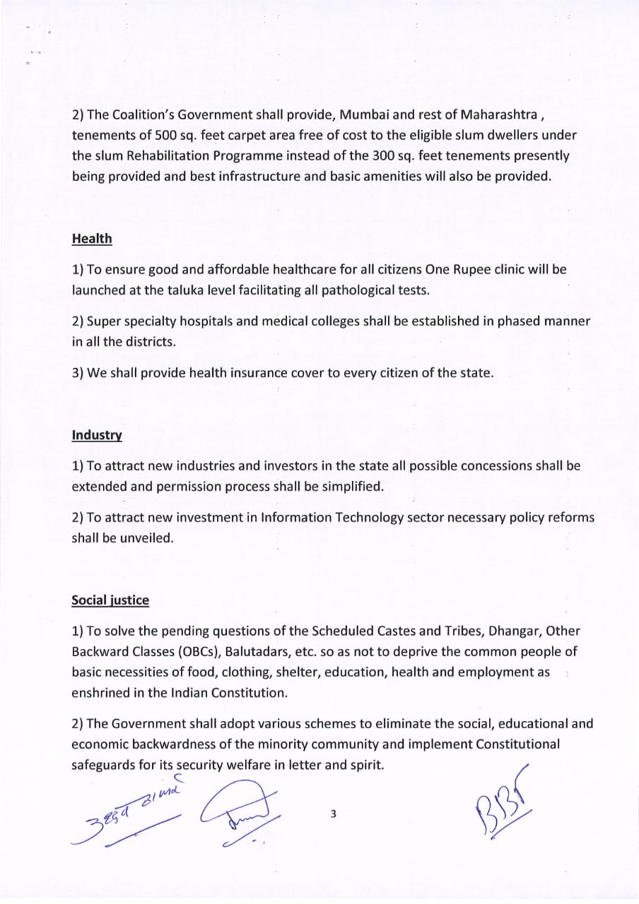One of the most contentious promises in the CMP is that the Shiv Sena, Congress and NCP have promised to enact a law that ensures 80% reservation in jobs for local and domicile youth. The CMP does not make clear whether this reservation would only be limited to government undertakings or extend even to private entities. Several provisions for women and urban development have also been promised.