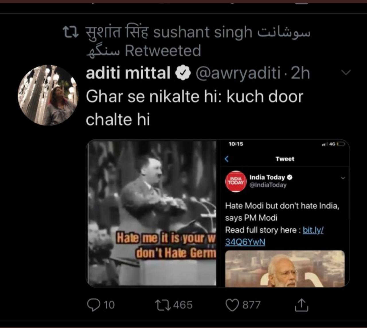 The fallacious tweet by Aditi Mittal was then retweeted by Bollywood actor Sushant Singh as well.