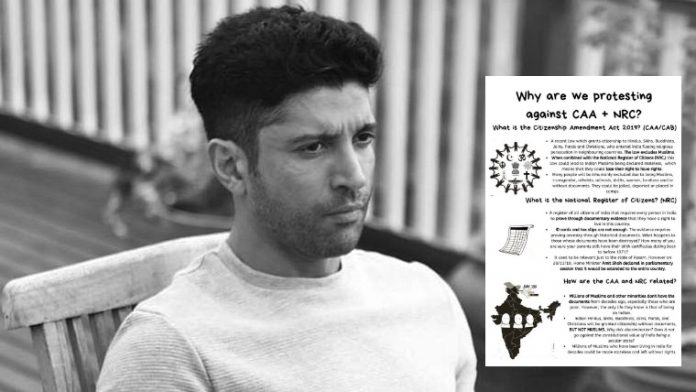Bollywood actor Farhan Akhtar on Wednesday shared an anti-CAA message on Twitter telling people why “these protests are important”. In the said message, the son of noted lyricist Javed Akhtar spread numerous canards about the Citizenship Amendment Act and the National Registrar of Citizens. It was retweeted over 16,000 times when this report was written. We have published a comprehensive piece debunking the claims here.