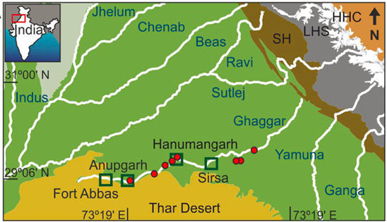 The scientists have determined the depositional ages of the coarse-grained white sand layers that occur 3-10 meters below the modern alluvium of the Ghaggar’s flood plains.
