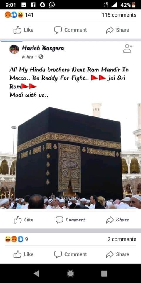 An Indian technician named Harish Bangera working in Saudi Arabian city of Dammam has found himself in trouble over his Facebook post regarding the Muslim pilgrimage site of Mecca. Harish is a resident of Udipi, Karnataka.