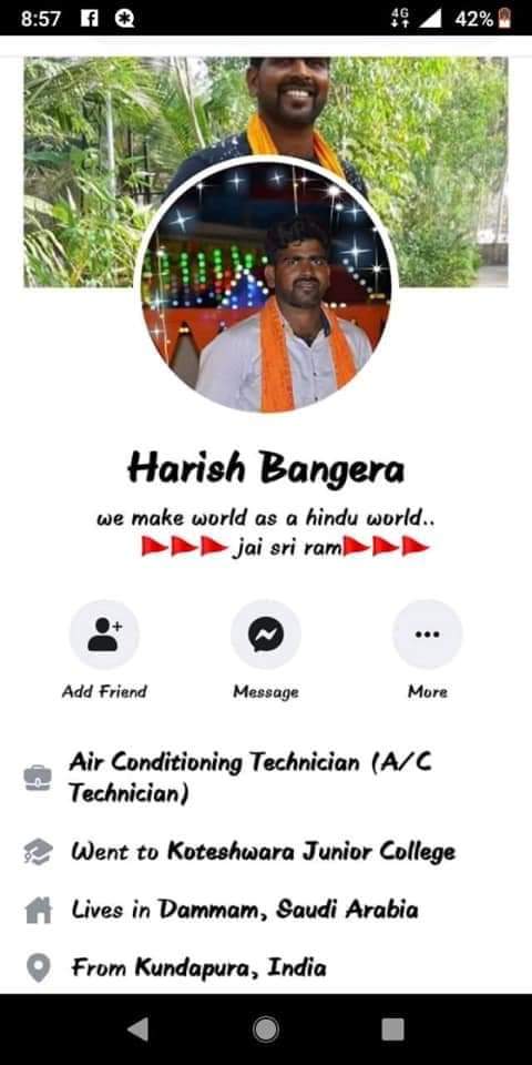 On the other hand, Harish has expressed his remorse over the posts uploaded by him. In a video, Harish can be seen beseeching forgiveness from Muslims for his Facebook post. In the video, he says, “I have committed a mistake. Please forgive me. I will never upload any such posts again. I have faced a lot of difficulties prior to coming to Dammam. I seek forgiveness from my Muslim brothers. I am facing problems with my company. Please forgive me.” However, it could not be ascertained when was the video made.