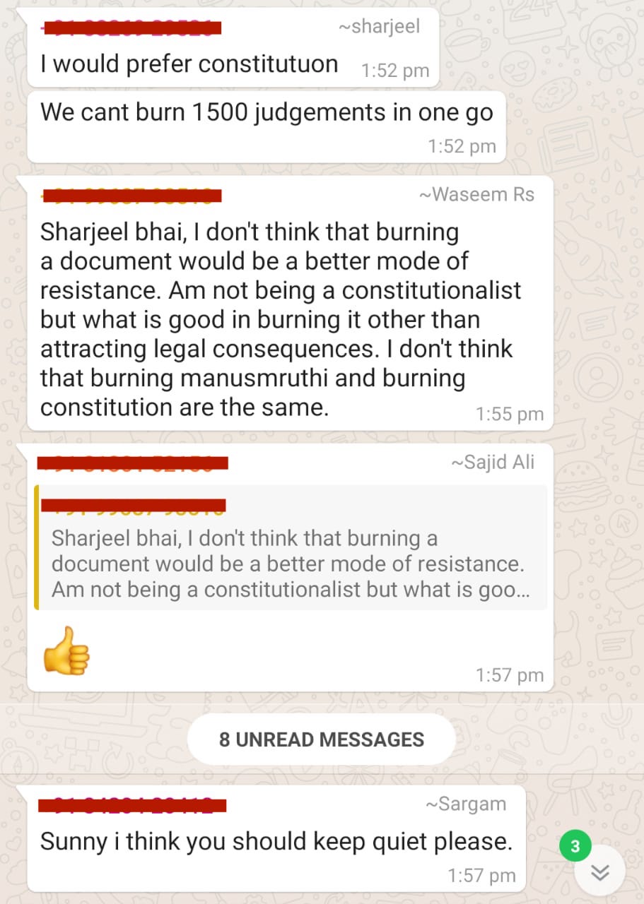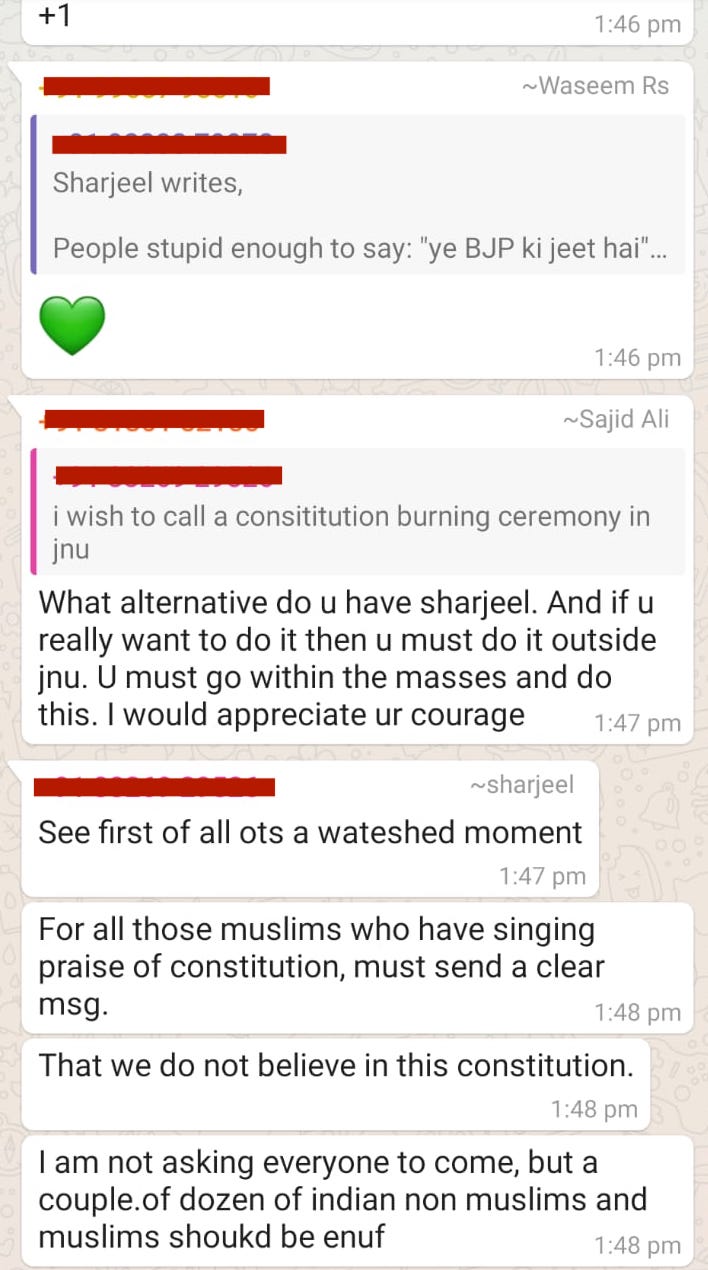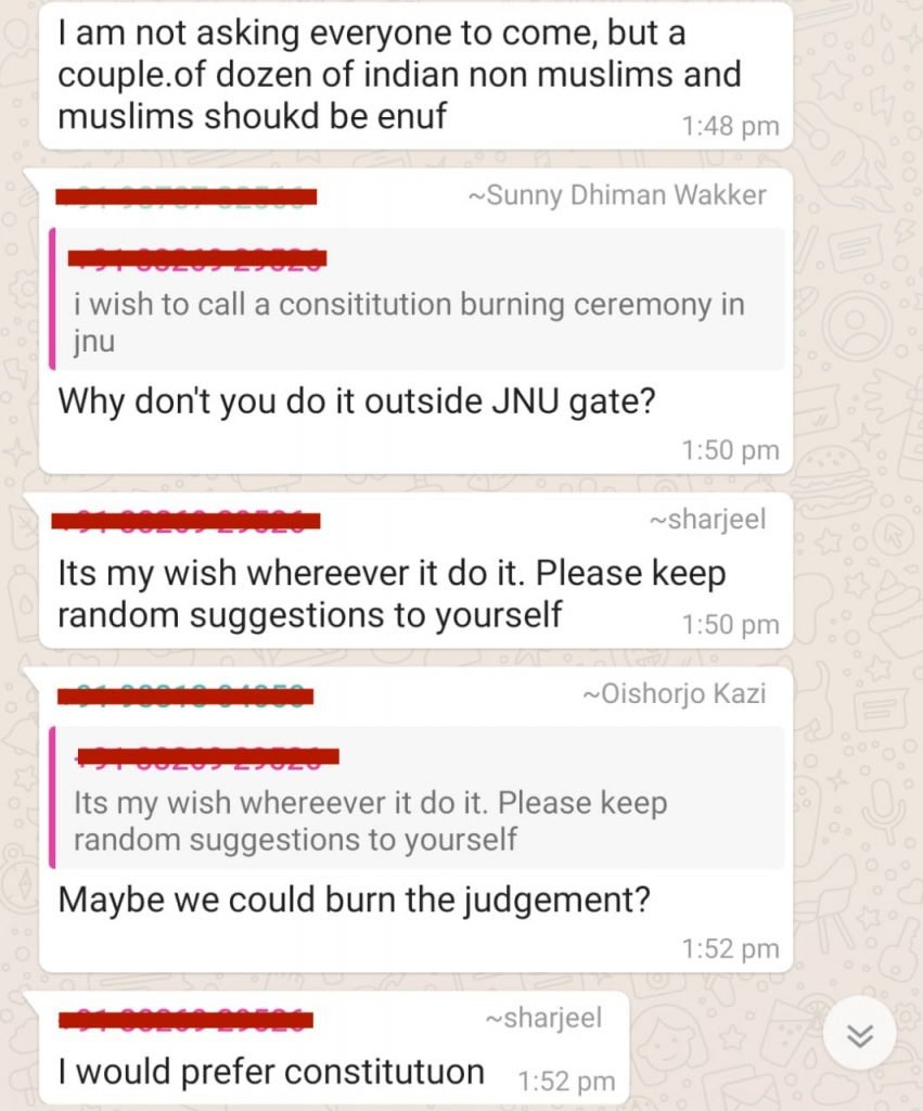 These are widely circulated as ‘organic’ protests in a bid to ‘save the constitution’. Except, like every drama, there’s a twist here. For this, we will have to go back to a few weeks when the Ram Janmabhoomi verdict was out. A conversation in a WhatsApp group of JNU students right after the Ayodhya verdict gives a clearer picture of how the Shaheen Bagh ‘organic’ protests blocking the highway culminated.