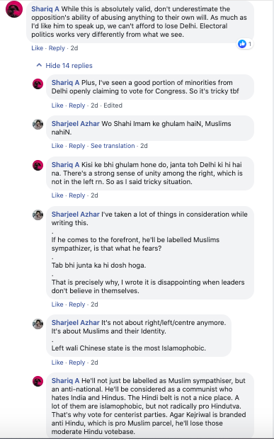 And one Shariq A joins him in discussing how Kejriwal is not joining the protests because he would appear ‘pro-Muslim’ and that might upset the majority. For Arvind Kejriwal, it is more important to win Delhi than to appear ‘pro-Muslim’ as per the above conversation.