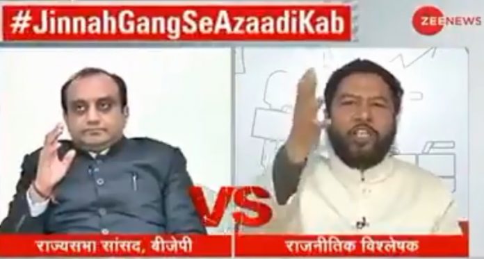 He is heard saying: “Seena dikhaiyen, ek aur Bangladesh ki tarah jo desh mein 20/25 crore Muslim abadi hain unke liye ek aur Pakistan bana dijiye aur Hindustan ko Hindu Rashtra ghoshit kar dijiyen” roughly translated as “India has 20-25 crore Muslims like Bangladesh, I dare Indian government to show guts and give a separate country, like Pakistan, to Indian Muslims. Then you can declare India as a Hindu Rashtra (nation),” he said during a live debate on Zee news.