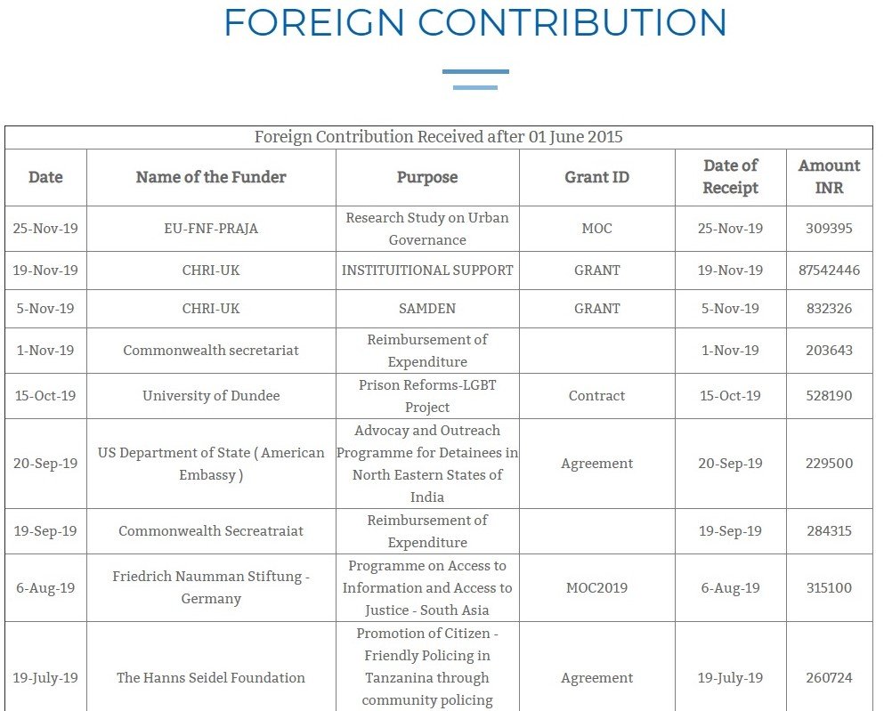 The ideological inclinations of Salil Tripathi, Siddharth Varadarajan of The Wire, and the New York Times are well known. These are compulsive contrarians who have a problem with anything and everything that the Modi government does. There are more troubling aspects to the CHRI than meets the eye. For instance, the CHRI had received Rs. 2,29,500 on the 20th of September, 2019 from the United States’ Department of State for the purpose of “Advocacy and Outreach Programme for Detainees in the North Eastern States of India”. This clearly amounts to foreign interference in India’s internal affairs by elements in the United States.