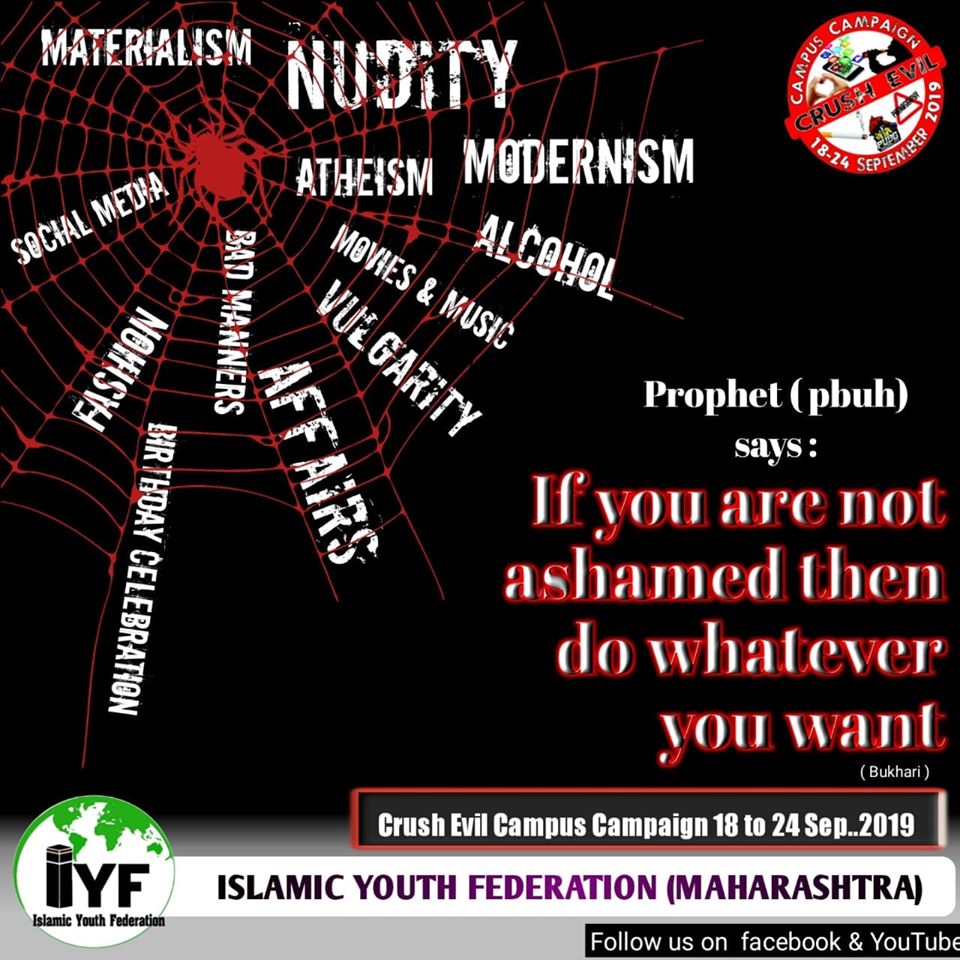 The reasons for Muslims to join this organization include “(IF!!!) You wish to liberate the humans from human dominance and bring the humanity under the rule of Allah” and “(IF!!!) You wish your school, college, campus, hostel, streets and cities to live by belief (iman) and Islam in vision, mission and action”. IYF also says that Muslims should join it if “You wish to convert your society into the best and exemplary society”.