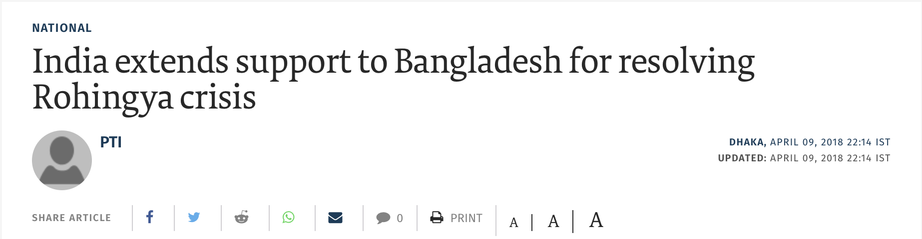 In fact, India extending help to Bangladesh as far as the Rohingya crisis is concerned was reported by The Hindu as well.