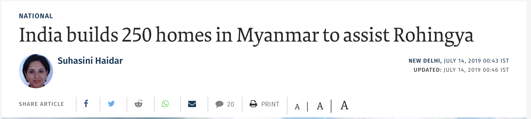 Interestingly, in a story reported by Suhasini Haidar herself, it was detailed how India is helping the Rohingya crisis.