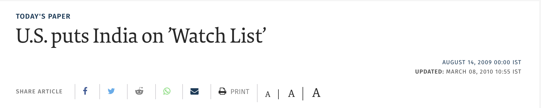 The Hindu itself has reported that USCIRF had put India on a ‘Watchlist‘ for religious intolerance and violence against minorities in 2009 under the Congress regime.
