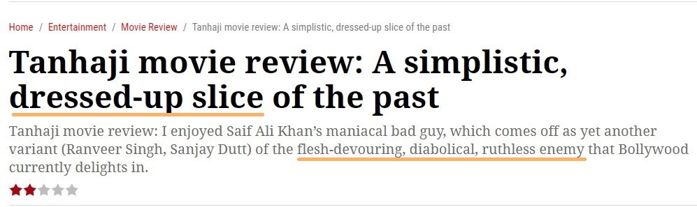 The reviewers at the national daily Indian Express, who is habituated to low budget movies of Swara Bhaskar, for which they often throw six stars out of the five, seems to have felt uneasiness after watching high-budget movies like “Tanhaji: The Unsung Warrior”.