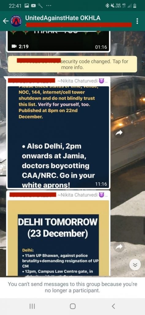 A Delhi Congress leader named Nikita Chaturvedi was part of WhatsApp group which mobilised protestors in December, WhatsApp conversations reveal. These messages pertain to December 2019 when the anti-CAA protests were at its peak and were widely peddled as ‘organic’ protests.
