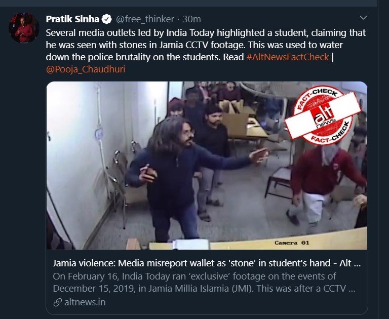 In the aftermath of it all, far-left propagandist website and self-proclaimed fact-checker AltNews claimed that the student seen in one of the videos wasn’t carry a stone in his hand but a wallet.