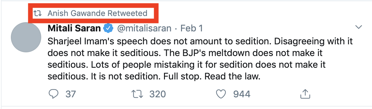 Anish Gawande himself has made and endorsed several other problematic statements. He has blatantly come out in support of Sharjeel Imam, a radical Islamist who wanted to break India.
