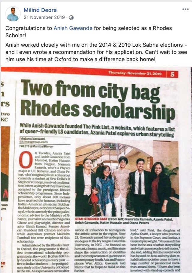 Anish Gawande is first and foremost the founder of ‘Pink List India’. ‘Pink List India’ is basically a platform that managed to google and lists the parliamentarians who support or oppose the cause of the LGBTQ+ community. His contribution to the fight for equal rights of the community starts from googling names of parliamentarians to writing articles that almost always compromise the cause of the nation.