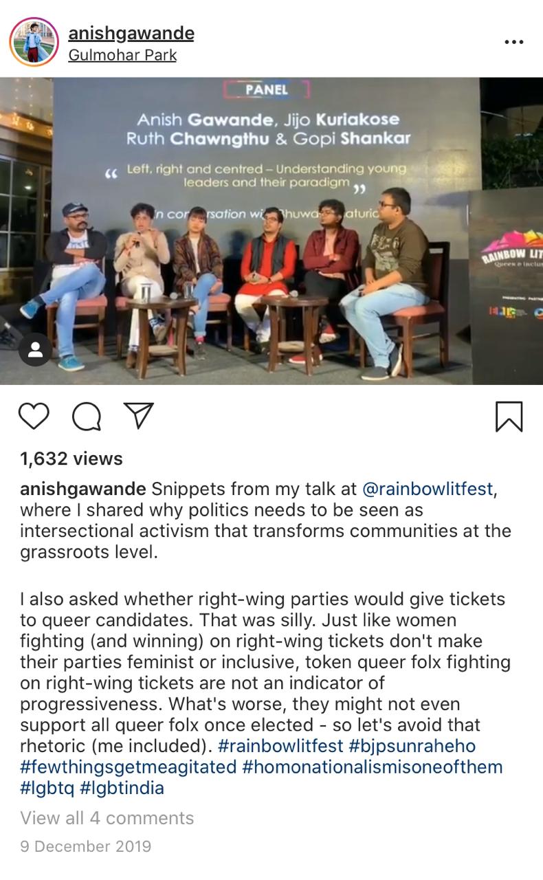 Calling the debate around Kashmir and Section 377 as “pinkwashing”, Anish goes on to talk about the so-called Human Rights atrocities that are being heaped in Kashmir. Quoting another activist, Anish says that the BJP is using the queer community for “violent and undemocratic objectives”. Anish further talks about how the LGBTQ+ community is being used to fuel Islamophobia and oppress Muslims. He says, “What’s worrying is that this is a global phenomenon. From Marine Le Pen cosying up to the queer community in France to the Republicans using the Pulse Orlando shooting to fuel Islamophobia, there has been a slow yet steady move to use LGBTQ+ rights to wash over discrimination against other minorities”.