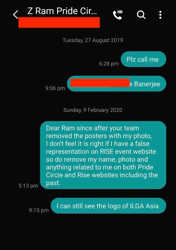 Even after de-platforming Madurai, the RISE event continued to use the ILGA logo, which was later removed after Madurai raised concerns.