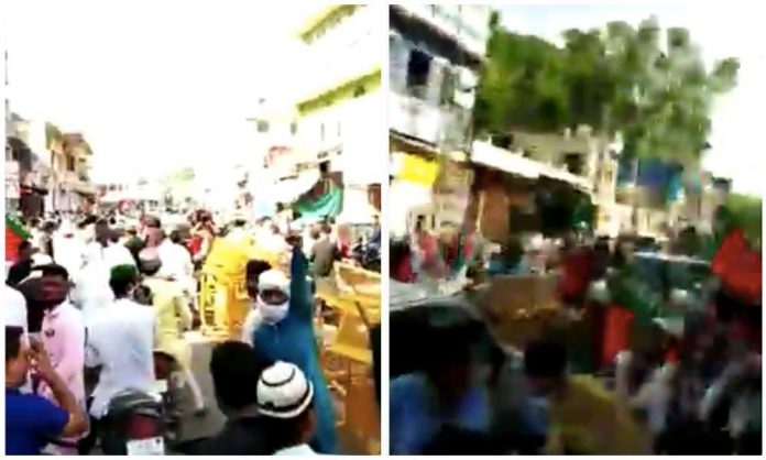 On 1st July, the above video was posted on YouTube where one can hear “Tabrez ke hatyaaron ko, goli maaro saalo ko” followed by Allah-hu-Akbar and RSS Murdabad. This is followed by ‘Chadda-chaddiwalo ko, goli maaro saalo ko”. These slogans are raised by a rally where SDPI flags could be seen. This is followed by “Tabrez tere khoon se, inqalaab aayega”.