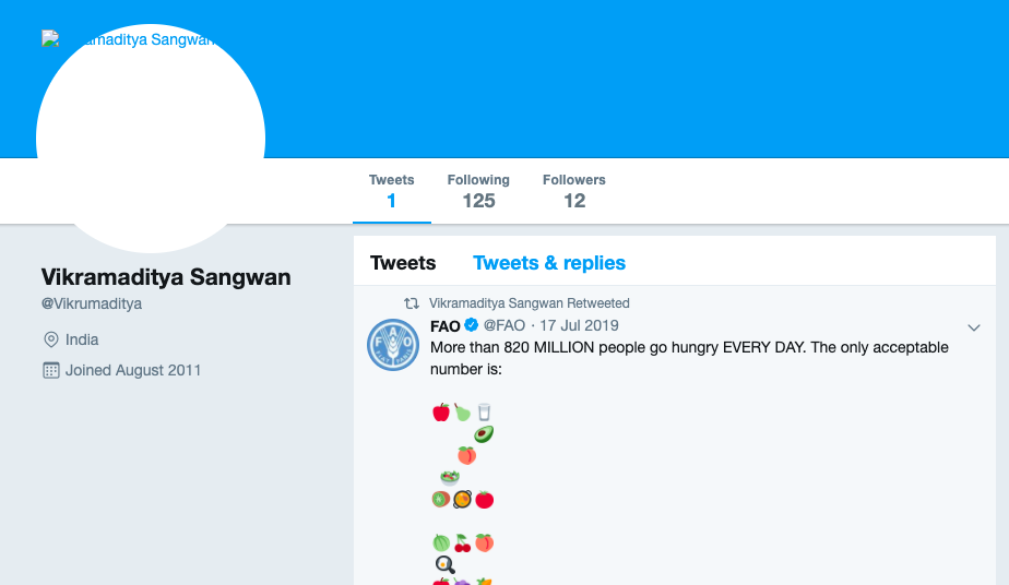 This is where things get interesting. A cached version of the profile shows that the Twitter account went by the name “Vikrumaditya” before he became “Vasundhara” for the viral tweet.