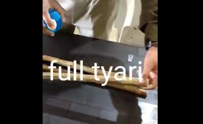 In the video, a police officer is seen spraying disinfectant on police lathis and sanitising both his hands. Since the police are certain that they would need to get tough on people who come out of their homes violating prohibitory orders, the SP disinfects the police batons and his hands to reduce chances of spreading or catching any kind of infection amidst the Coronavirus pandemic.
