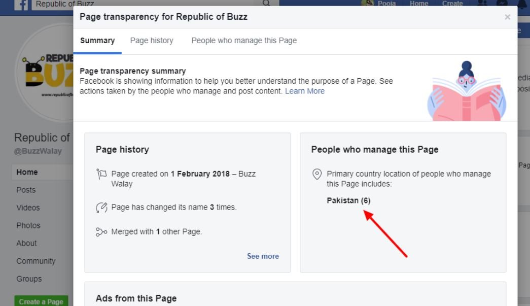 The ‘page transparency’ details of the website’s Facebook page reveals that it is managed by six individuals from Pakistan.