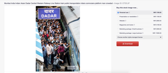 The photograph was of the Dadar railway station. Interestingly, even in the image shared by Dinesh Trivedi, a strip towards the lower end of the picture indicated that it was a stock image from Alamy.