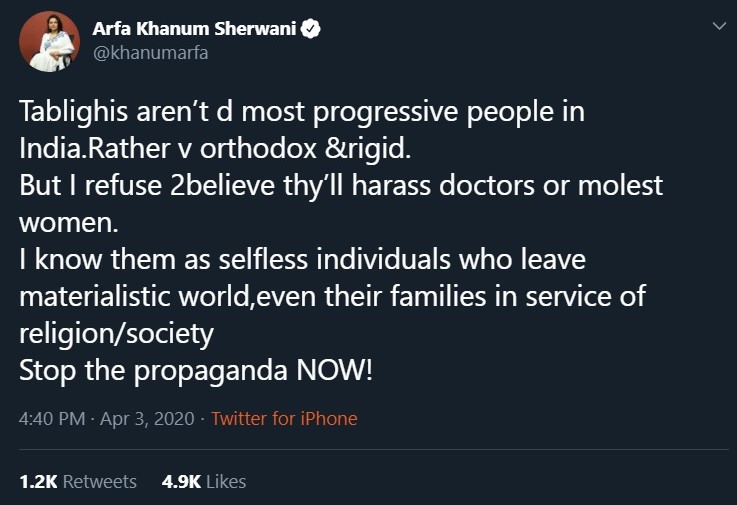 — Arfa Khanum Sherwani (@khanumarfa) April 3, 2020