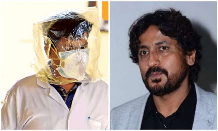 The article shared by ‘journalist’ Vinod Kapri read that there is astonishing unavailability of safety equipment such as protective masks in Agra district hospital that doctors have to wear polythene bags on their faces in order to safeguard themselves from contracting the contagion while treating the positive coronavirus patients. A photo accompanied Kapri’s report in which a doctor can be seen wearing a polythene bag after wearing a mask on his face.
