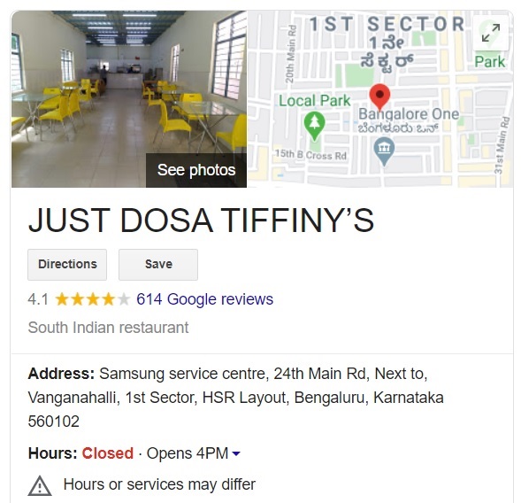 Just Dosa, a popular Dosa point in Bengaluru, has closed its operations due to coronavirus and only hopes to operate once the lockdown is lifted. The Google My Business shows that the establishment is ‘closed’ and not ‘permanently closed’.