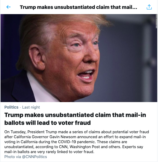 Clicking on the alert would take you to further links on the claims regarding mail-in ballots.