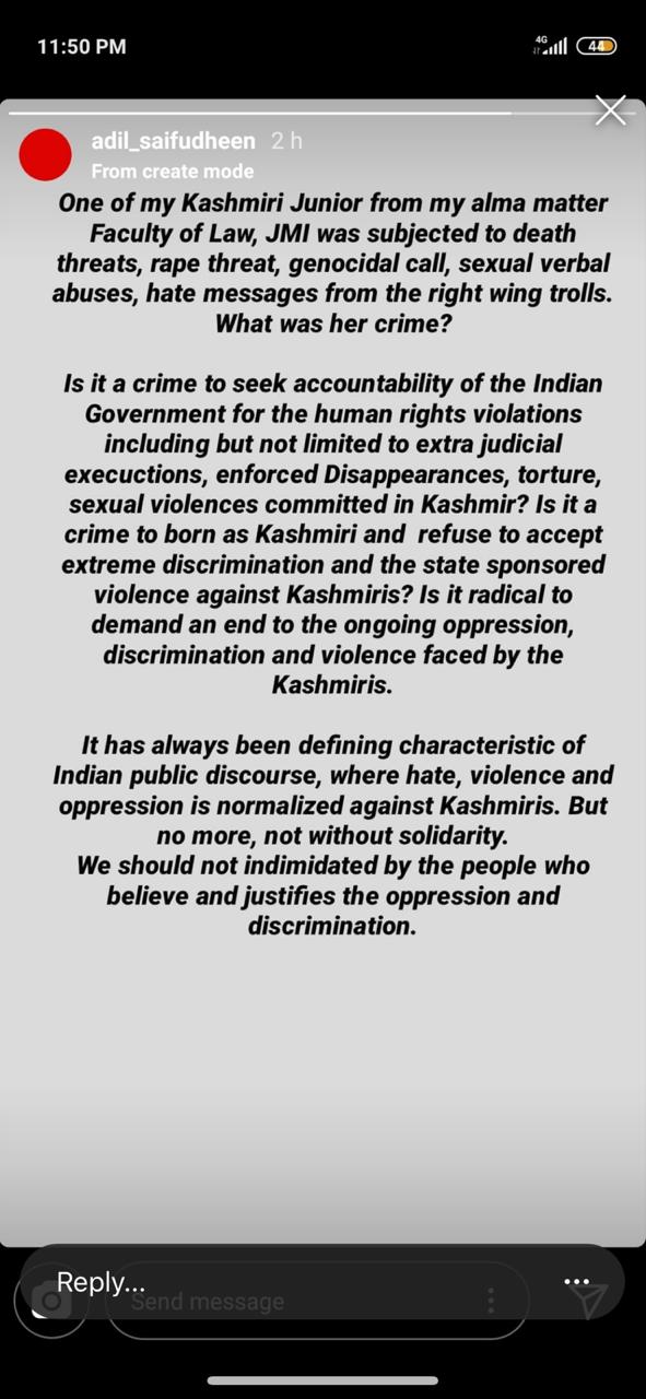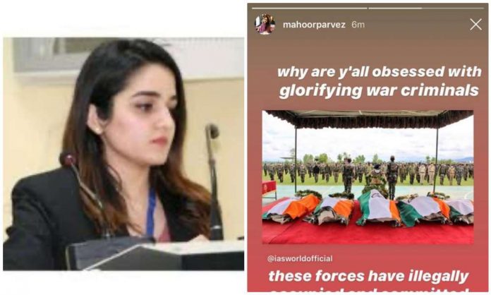 Jamia Millia Islamia University law student Mahoor Parvez took to social media to refer to the Indian soldiers who were martyred in Handwara encounter on Sunday as ‘war criminals’.