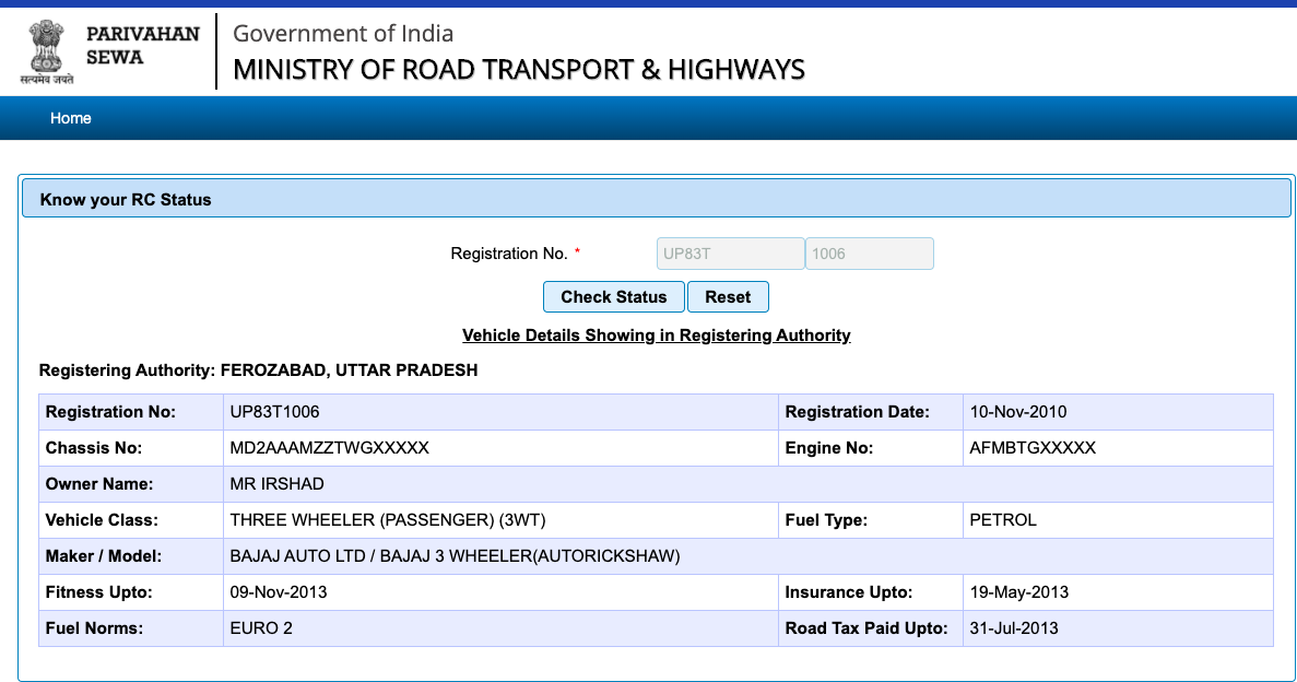 As per the government records, the UP 83 T 1006 is actually an auto rickshaw.