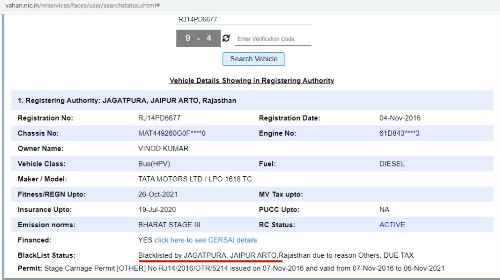 Similarly, another bus was also blacklisted. The blacklisted buses are off the road for various reasons.