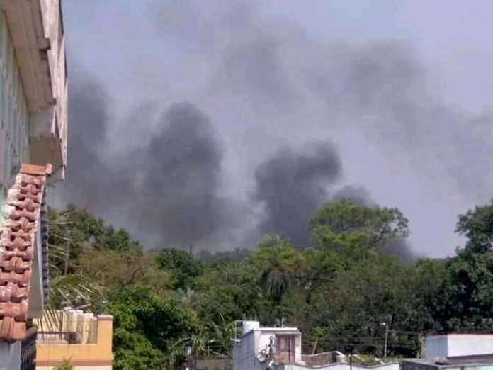 In the above video shared by MP Swapan Dasgupta one can see smoke billowing from houses that were set on fire by a mob.
