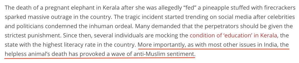 The nation was shocked after news surfaced of a one-month pregnant elephant died in Palakkad on May 27, days after it injured its jaws due to explosives packed in pineapple that it had eaten. Soon, news surfaced that the perpetrators may have belonged to the Muslim community and it was then that the Islamic propaganda website AltNews published a ‘fact-check’ to discredit the story and shield the perpetrators, as they have done several times in the past.