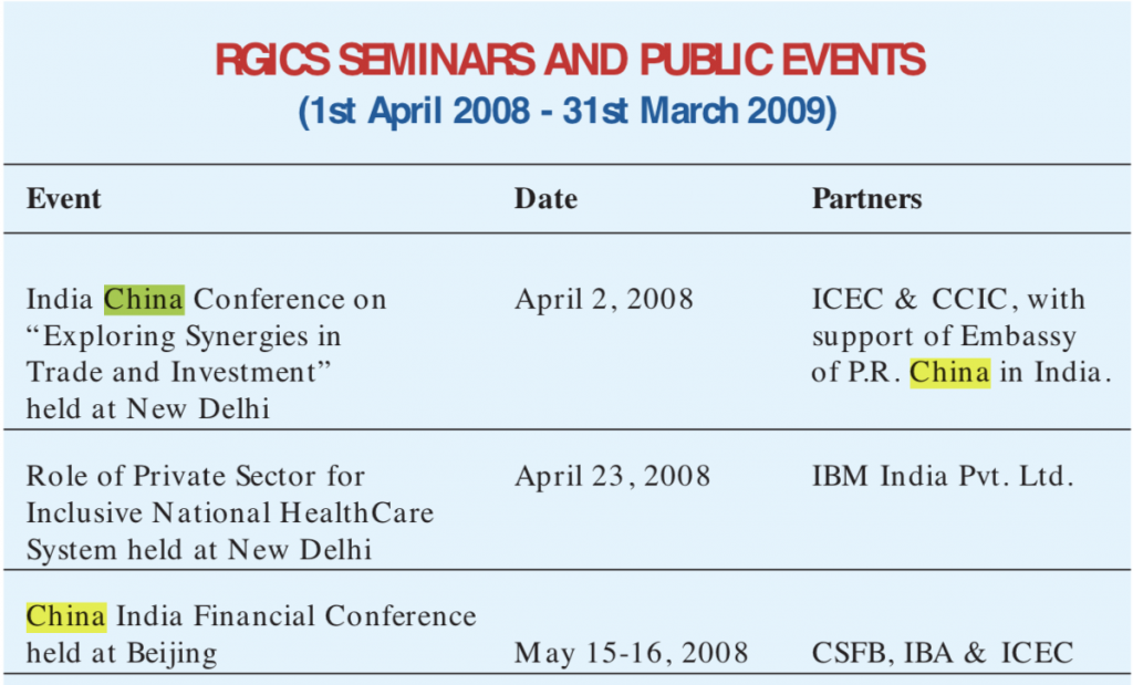 On the same year, after receiving donations from the Government of China, two seminars were held by Rajiv Gandhi Foundation that focussed on the interests of China.