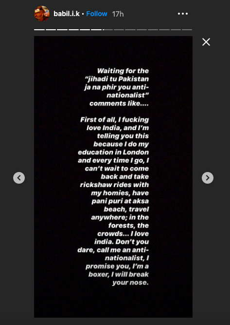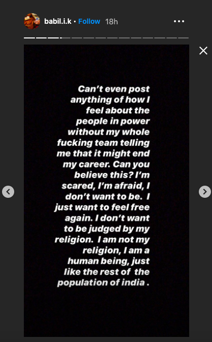Bollywood actor Irrfan Khan’s son Babil on Wednesday took to Instagram to express fear of not being afraid to post anything on social media against the ‘people in power’ as it may ruin his career. In a series of posts on his Instagram stories, Babil said that having a holiday for Raksha Bandhan and not having one for Eid is against the secular fabric of our nation.