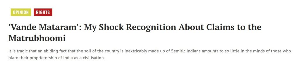 The objective of the article was quite clearly to justify the refusal of the Muslim community to sing the Vande Mataram. However, in the process, Badri Raina had a Freudian Slip and revealed why liberals are so enthusiastic about providing citizenship rights to illegal Muslim immigrants from Bangladesh and Myanmar. It is because such people genuinely believe that Muslims have a greater claim to India than Hindus.