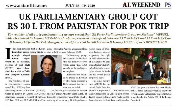 As per the report, the register of All-Party Parliamentary groups on Kashmir (APPGK) had received monetary benefit amounting between £31,501 and £33000 from the Pakistan government during the members’ visit to Pakistan and PoK in February. Reportedly, the ‘benefit in kind’ was received on February 18, 2020.
