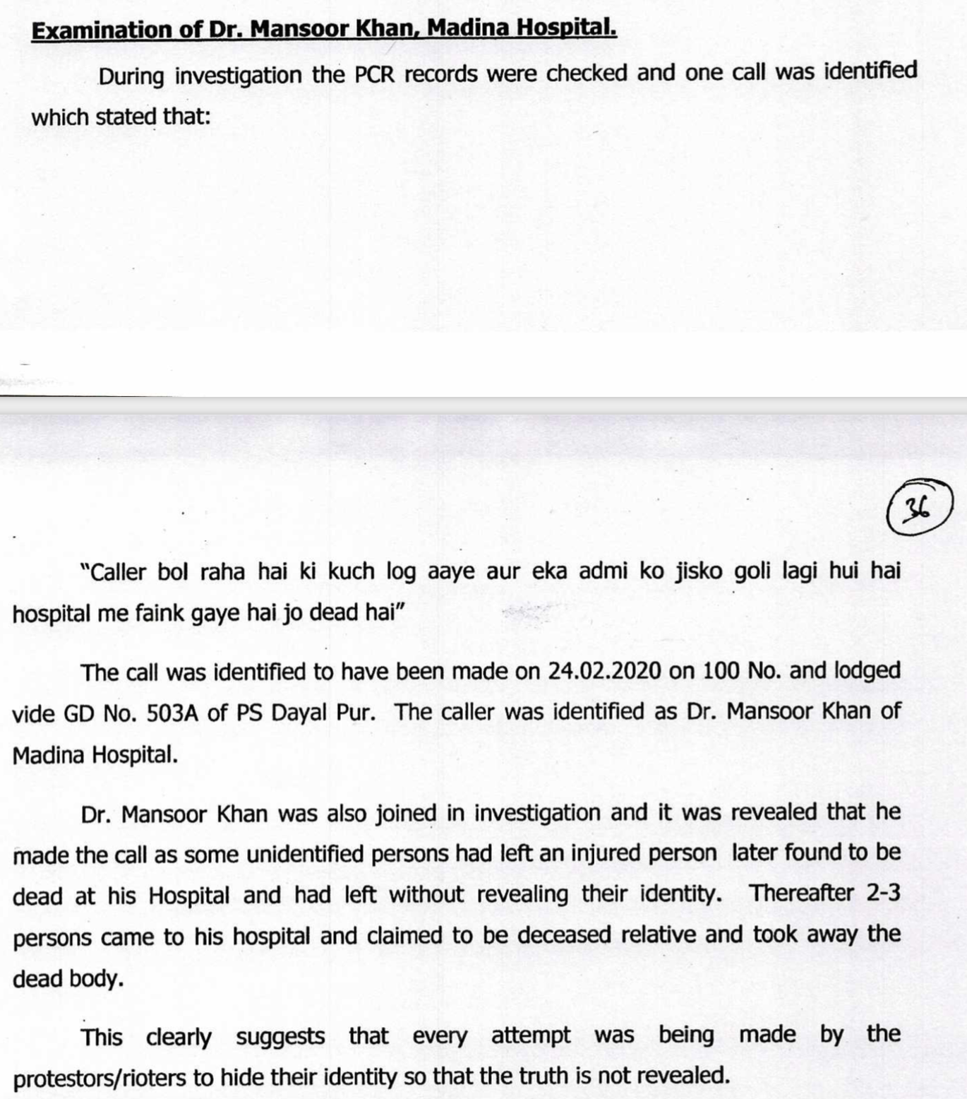 Mansoor Khan had made a PCR call when he got the body of Shahid Alam. In the call, Dr Mansoor had said that some people came to hospital and discarded the body of a man who had suffered a gunshot injury. The call was made on the 24th of February and the caller was identified by the police as one Dr Mansoor Khan of Madina Hospital.