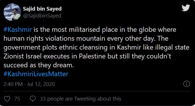 This is not the first time that Sajid bin Sayed has spewed venom against the Army and the BJP government. In his July 12 tweet, Sayed had accused the centre of plotting ethnic cleansing in Kashmir.
