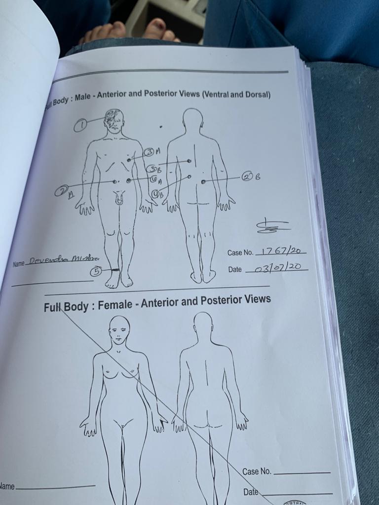 As per the postmortem report, CO Devendra Mishra was shot at 4 times of which 3 bullets went through his body. 1 bullet hit his head, one in his chest and 2 hit his stomach.