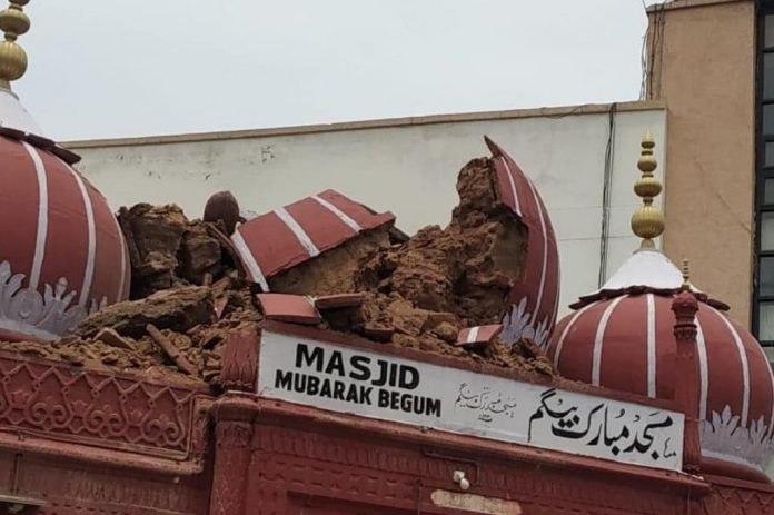 Early morning on Sunday, one of the domes of ‘Randi Ki Masjid’ aka ‘Rundi Ki Masjid’, the 19th century mosque of Mubarak Begum came crashing down. Mohammed Zahid, the muezzin heard a loud noise at around 6:45 AM when he came out to see that the central dome of the mosque had fallen down.