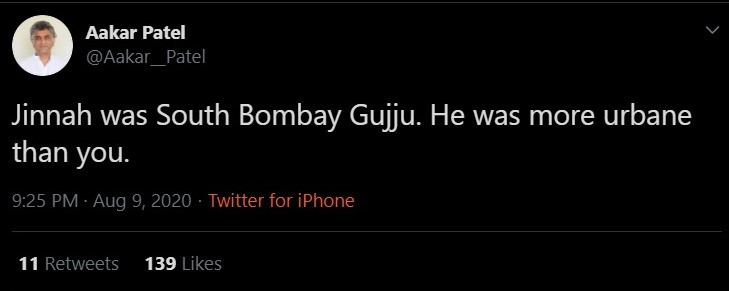 The activist also made an ardent defence of Jinnah, the Jihadist who called for a ‘Direct Action Day’ that directly led to the massacre of Hindus. He said that Jinnag was a ‘South Bombay Gujju’ and more ‘urbane’ than the average Indian, as if that excused his Jihadist inclinations.