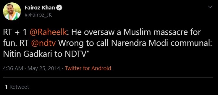 For instance, Raheel Khursheed, who once happened to be the head of Twitter India for news and politics, was quite openly biased against Prime Minister Modi. Khursheed accused Narendra Modi of committing a ‘Muslim massacre’ without any evidence.