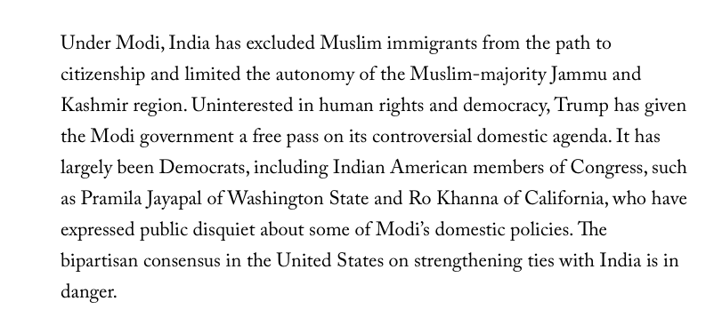 The reason why he has written a long article on ‘Bad-Trump bad-Modi’ is explained on the later lines. Menon has explicitly mentioned that Trump has never ‘objected’ to Modi’s domestic policy. He has given a “free pass” to Modi’s divisive domestic agenda and it was only a few Democrat leaders, like Pramila Jayapal, and Ro Khanna who had spoken against Modi’s policy.