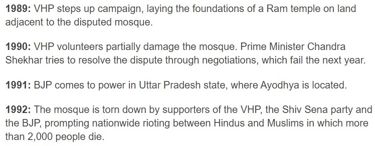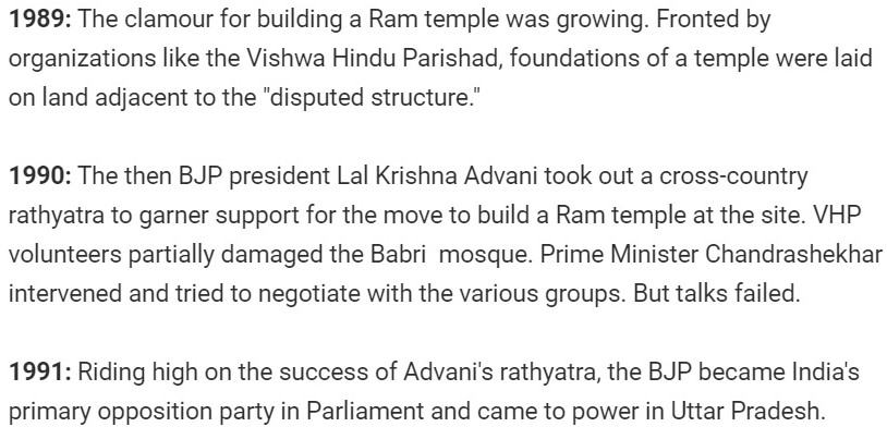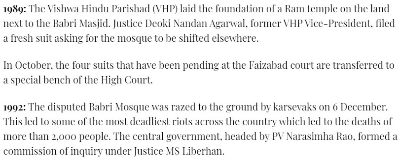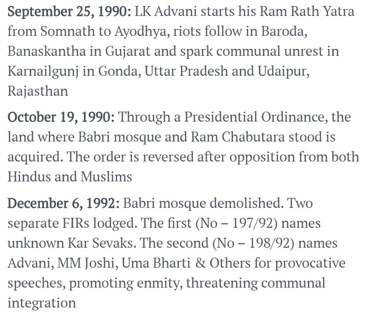 Firstpost skipped the events of 1990 entirely. They mention the events of 1989 briefly and then move directly to 1992. It is made to appear as if nothing of consequence happened in 1990.